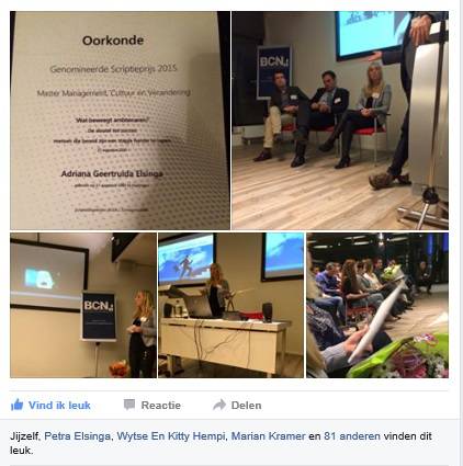 Raymond: "Gister avond naar Utrecht geweest voor de uitreiking van 'beste scriptieprijs 2015' waar mijn vrouw Diana Schaeffer-Elsinga 1 van de 3 genomineerden was.